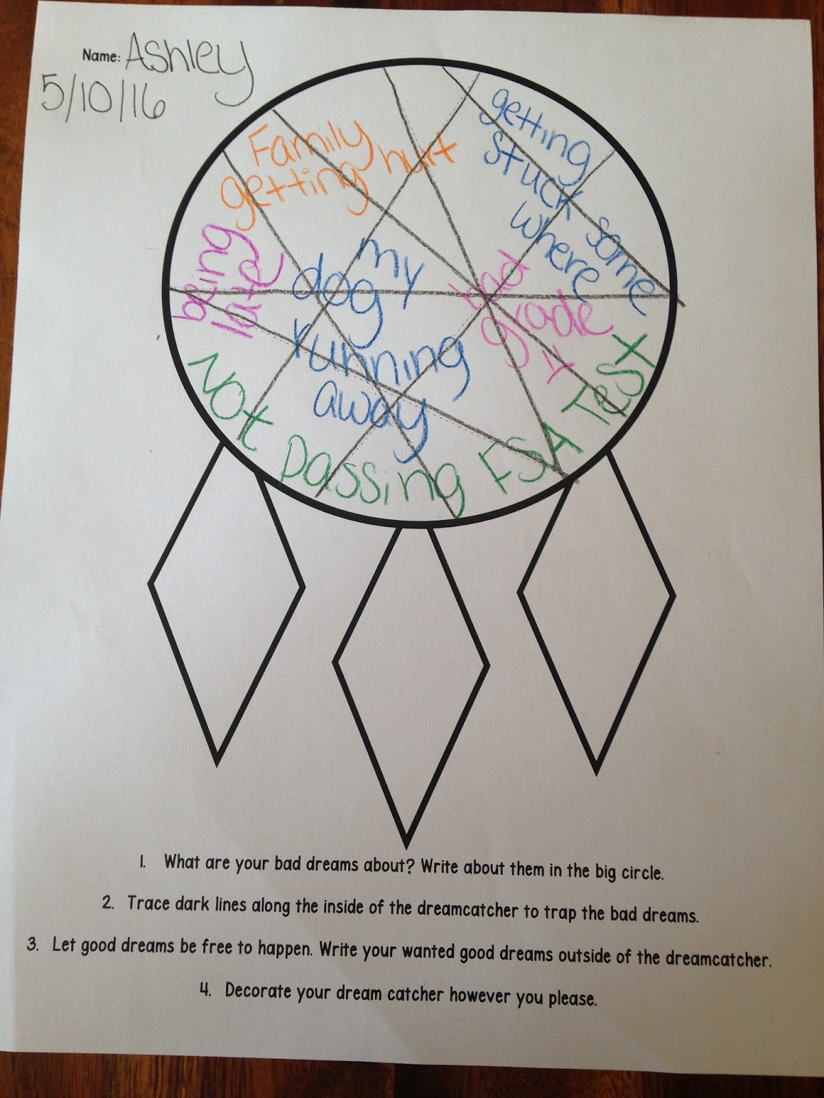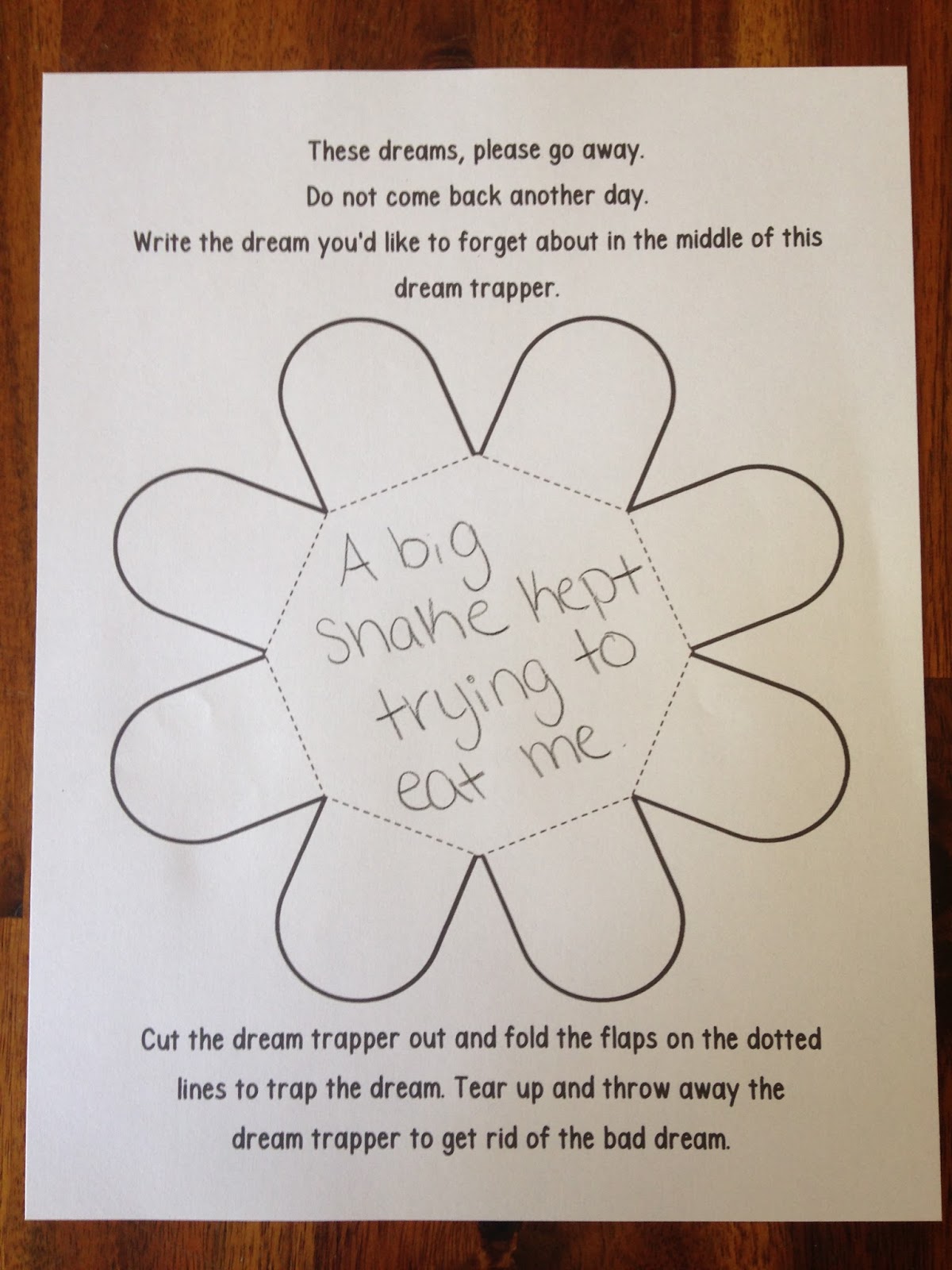 students to let go of their bad dreams/nightmares and the associated feelings.